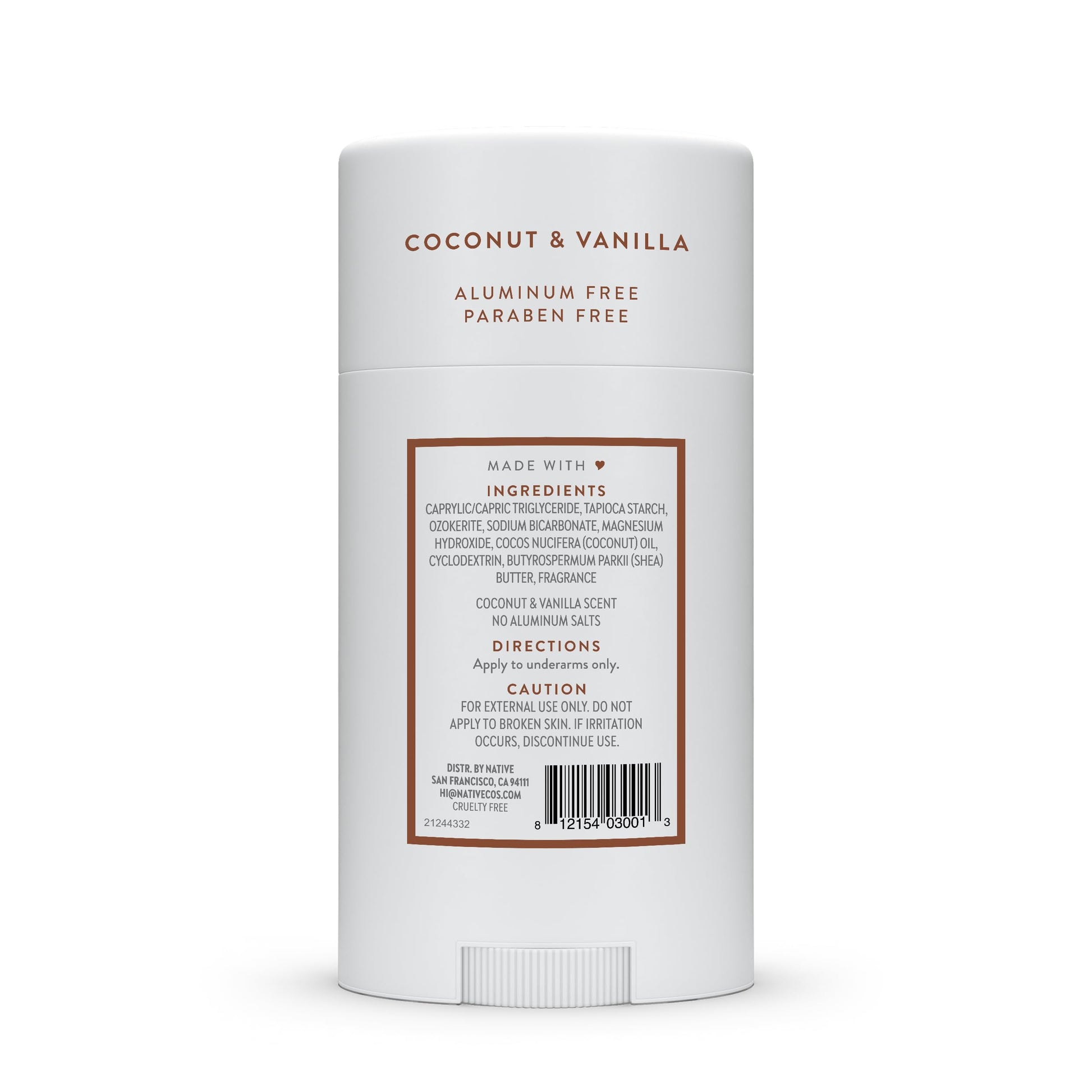 Native Deodorant,Unscented, Aluminum Free, Paraben Free, 2.65 OZ (75 g), Coconut Oil and Shea Butter
